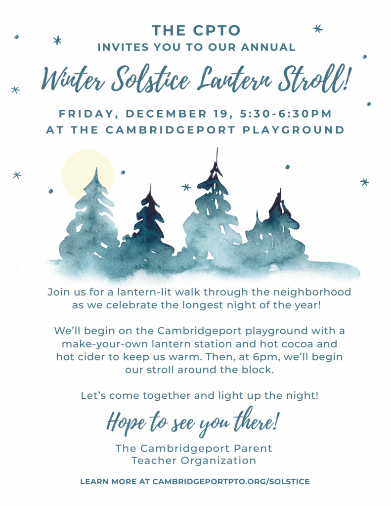 The Cambridgeport Parent Teacher Organization (CPTO) is an open membership of caregiver volunteers working together to support our children, families, and teachers through events and fundraising initiatives to benefit the entire Cambridgeport School.